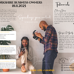 We’re bringing together business owners and content creators for an exclusive 1-hour private session designed to elevate your brand. ✨ Photography with Julia Healy 🎥 Videography with Dave Lawal In just one power-packed hour, you’ll walk away with 50+ high-quality deliverables ready to use across your website, marketing campaigns, social media, and personal branding. 📍 Venue: www.lightspaceleeds.co.uk 📅 Date: 18.11.2025 👉 Secure your slot now to make sure you don’t miss this opportunity to upgrade your content and stand out.